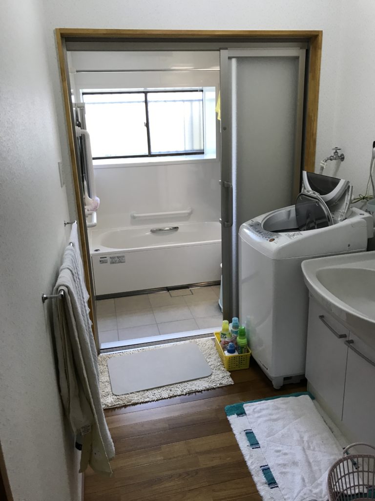 こちらのお宅も通常規格で行くと幅30cmもったいないゾーンができてしまうのですが、タカラスタンダードのぴったりサイズシステムバスを使うことにより写真の通りスペースにぴったり納まっております。