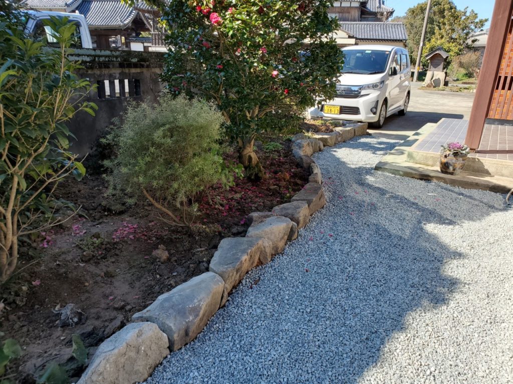 砂利は家主さんが自分で広げたいとおっしゃったので、防草シートを敷くと草が生えないですよと教えてあげました。