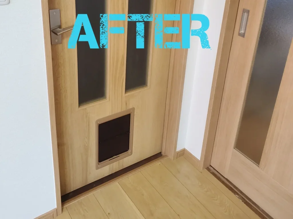 ペットの猫が通れるドアが欲しいとの事で、ペット用のドアに交換しました。